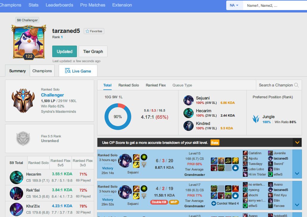 【LoL】TarzanedがNAのラダーで1500LPに到達した